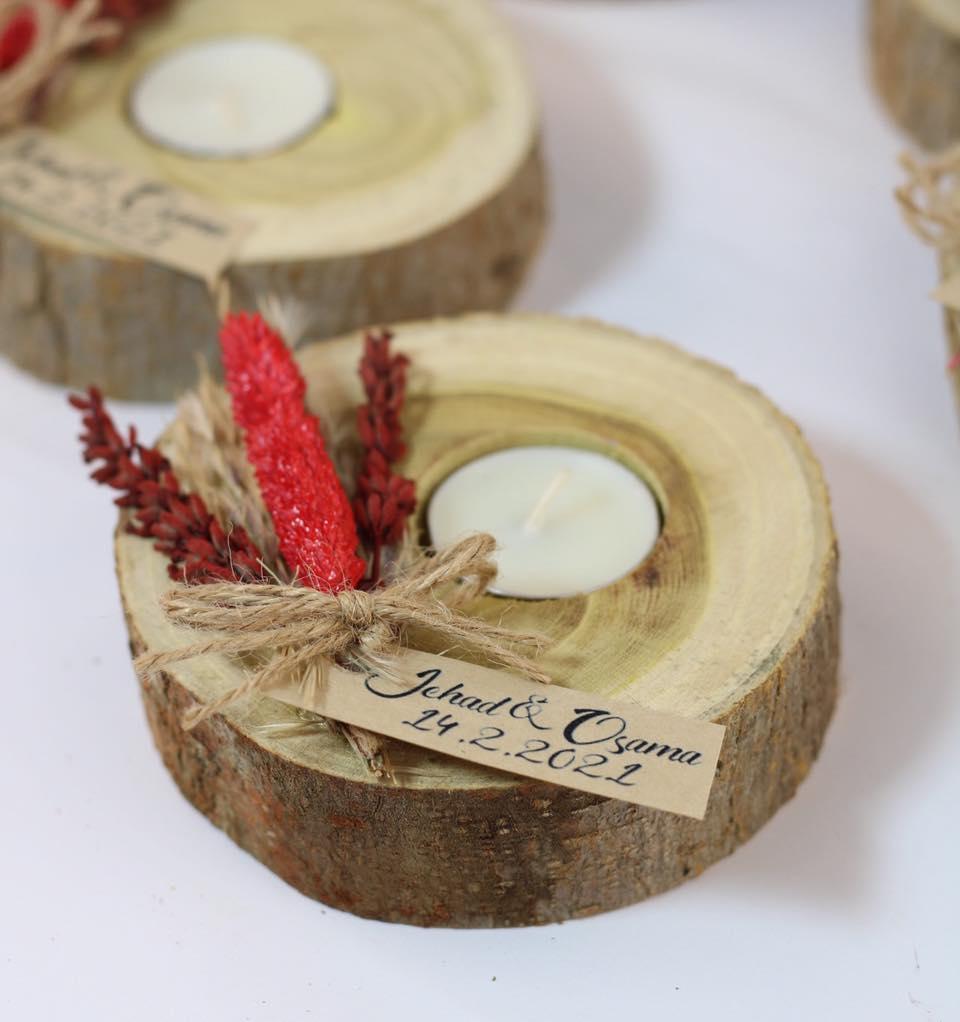 كوستر خشب طبيعي بشمع وديكوريشن ورد مجفف