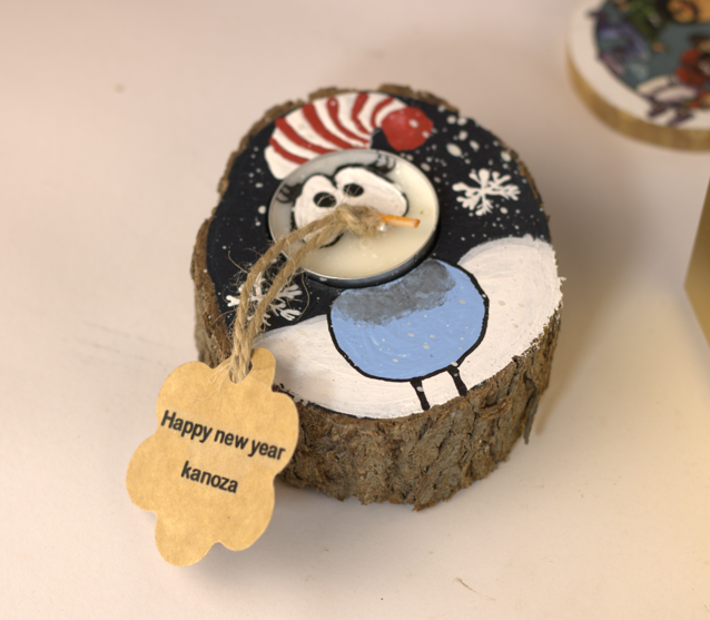 كوستر خشب  سنومان مرسوم يدويا قطر 10 سم