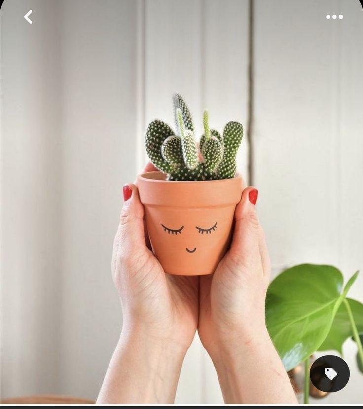 صبار طبيعي (ابونتيا ) في بوت فخار مرسوم هاند ميد