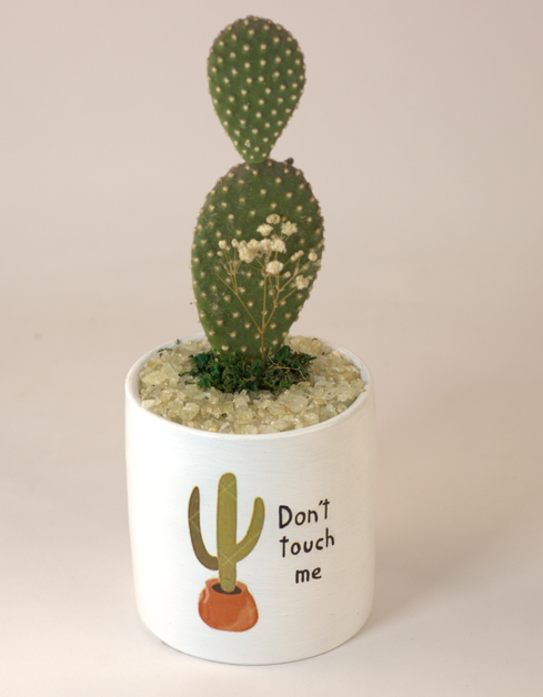 نبات طبيعي (ابونتيا) في بوت فخار مرسوم هاند ميد