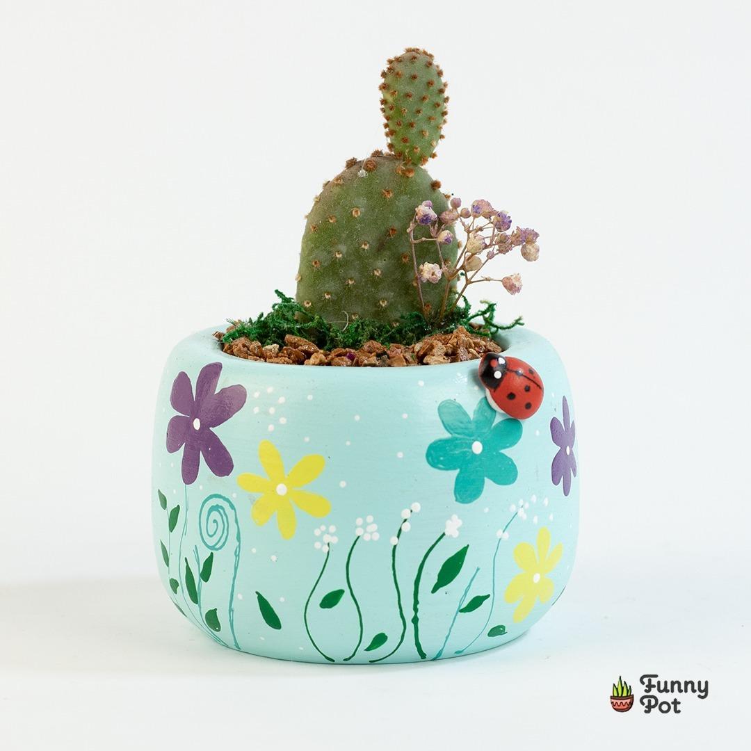 نبات طبيعي (ابونتيا) في بوت فخار مرسوم هاند ميد