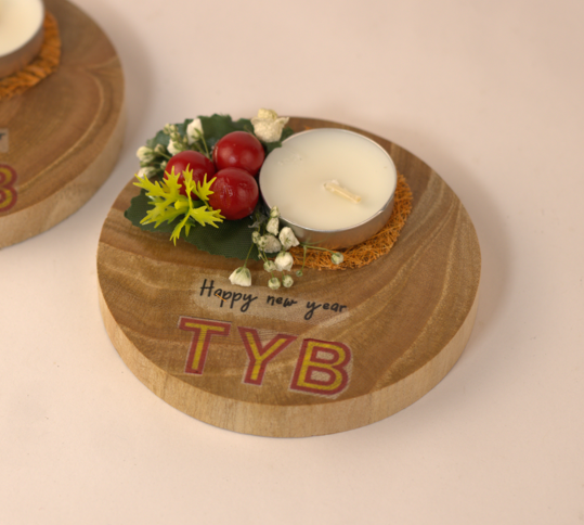 كوستر خشب طبيعي بالشمع وديكوريشن قطر 10 سم