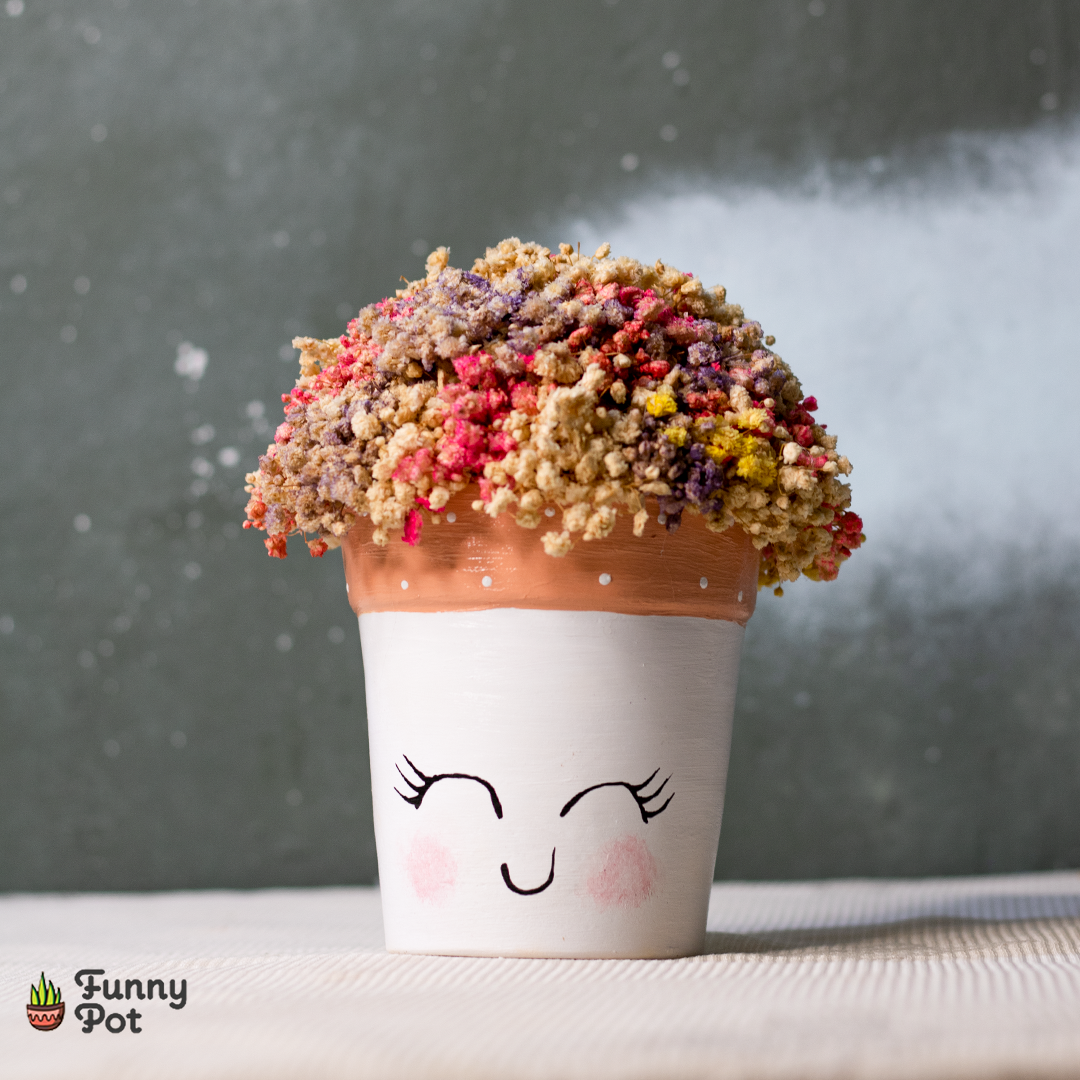 زهور جيبسوفيل هولندي  في بوت فخار مرسوم هاند ميد باي لون تحبه