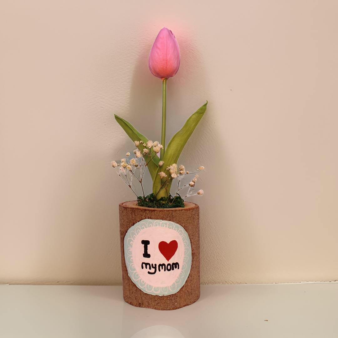 ورد صناعي في بوت من جذوع الشجر الطبيعي مرسوم هاند ميد