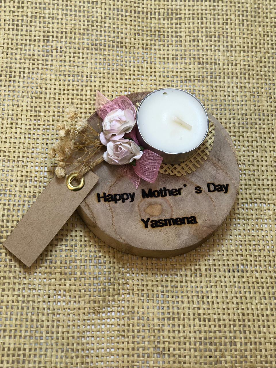 كوستر من خشب الاشجار الطبيعي محفور عليه جملتك المفضله وقطعه شمع معطره وديكوريشن مميز وليبول كرافت لكتابه اسماء