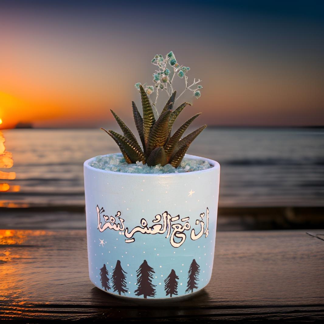 نبات طبيعي( هوراثيا) في بوت فخار مرسوم هاند ميد