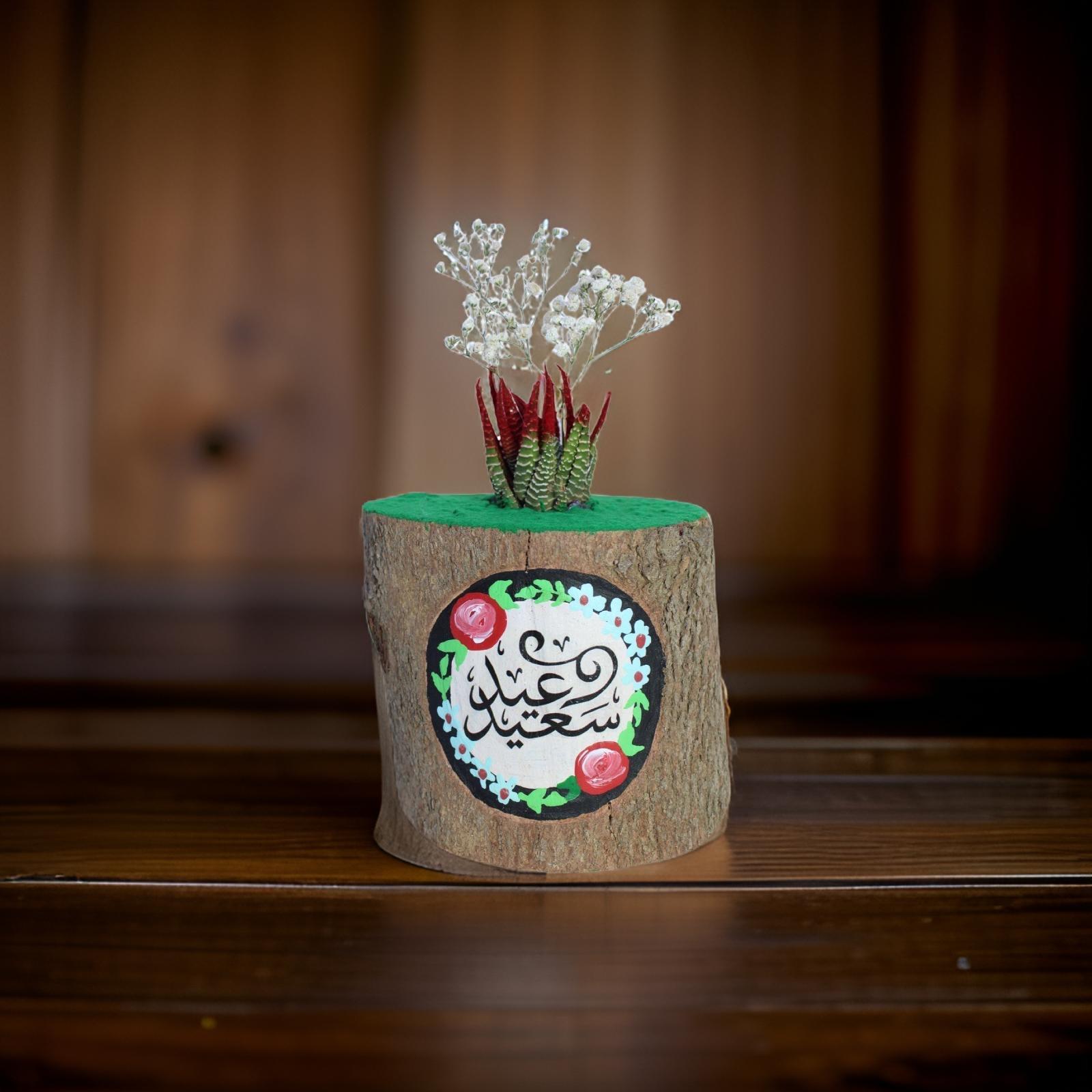نبات طبيعي (هوراثيا) في جذع خشب مرسوم هاند ميد