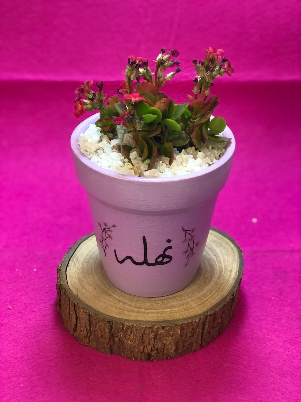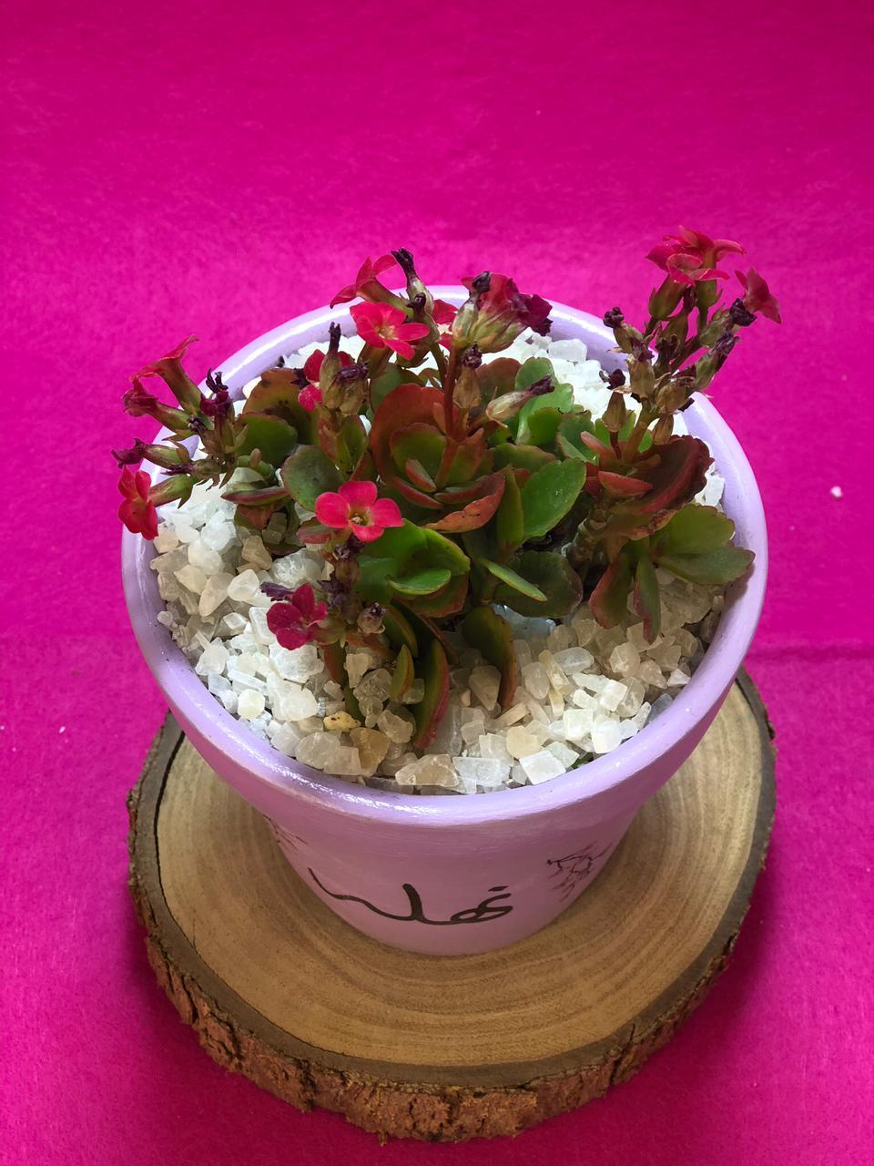 نبات طبيعي (كلانشو) في بوت فخار مرسوم هاند ميد بطباعة الاسم