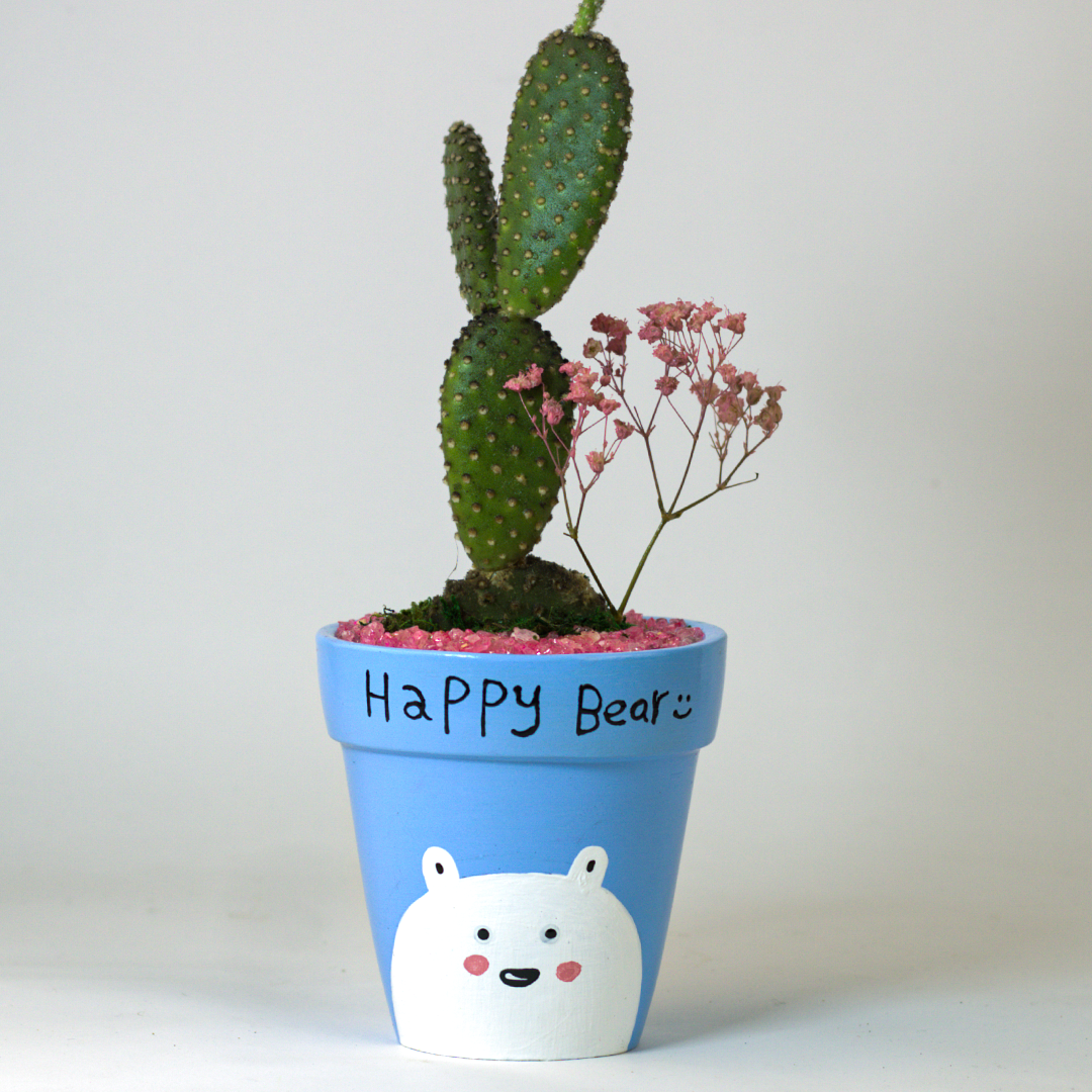 نبات طبيعي(ابونتيا) في بوت فخار مرسوم هاند ميد