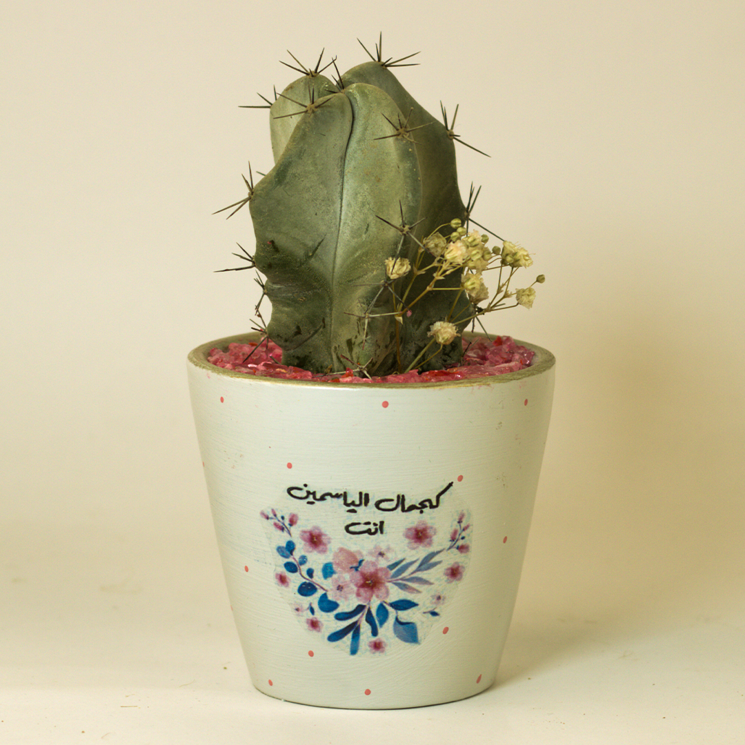 نبات طبيعي(لميرو) في بوت فخار مرسوم هاند ميد