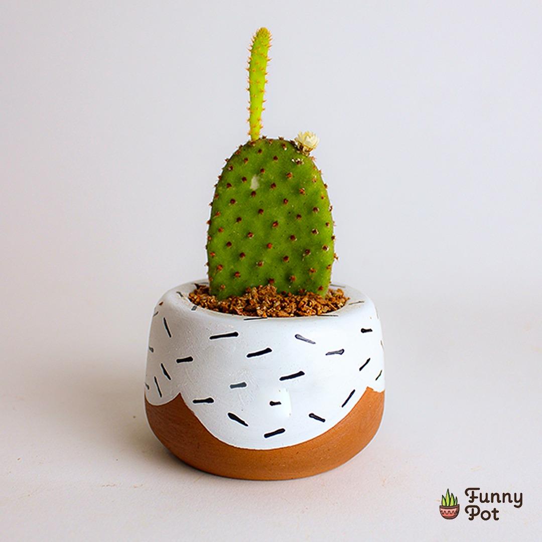 نبات طبيعي (ابونتيا)* في بوت فخار مرسوم هاند ميد