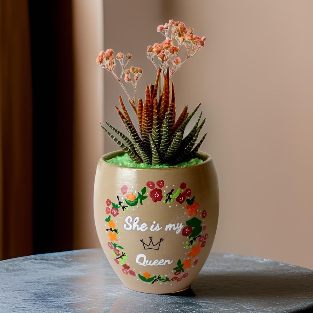 نبات طبيعي (هوراثيا) في بوت فخار مرسوم هاند ميد