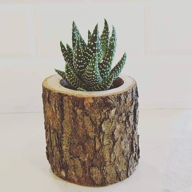 صبار في جزع خشب طبيعي