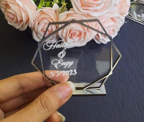 استاند اكريليك مميز محفور عليه الاسماء وجملتك المفضله