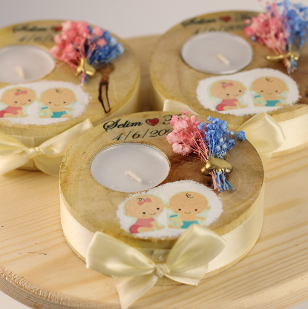 كوستر خشب طبيعي بالشمع والديكوريشن قطر 10 سم