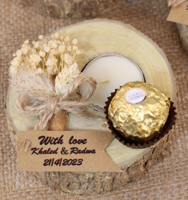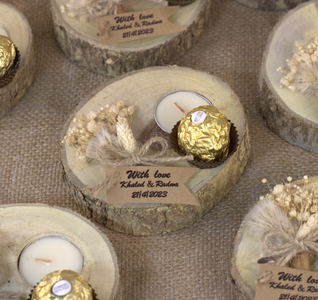 كوستر خشب طبيعي بالشمع والشيكولاته والديكوريشن قطر 10 سم