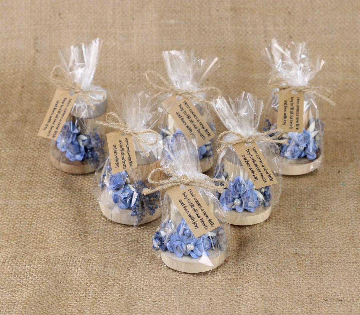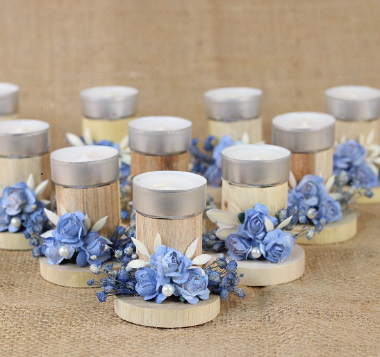 ميني ماستر بيس بخشب الاشجار الطبيعي والشمع وديكوريشن فلوري ازرق مميز مغلف بالسلوفان وليبول كرافت لكتابه جملتك المميزه مقاس 9*6 سم