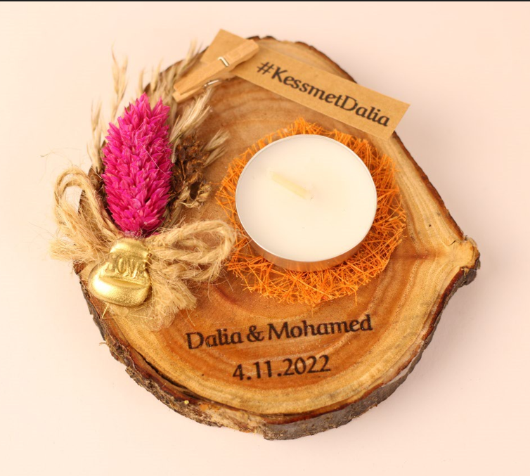 كوستر خشب طبيعي بالشمع وورد مجفف قطر 10 سم