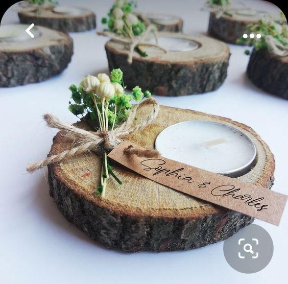كوستر خشب طبيعي بالشمع وديكوريشن ورد مجفف قطر 10 سم