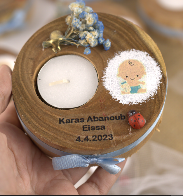 كوستر خشب طبيعي بالشمع وديكوريشن ورد مجفف قطر 10 سم